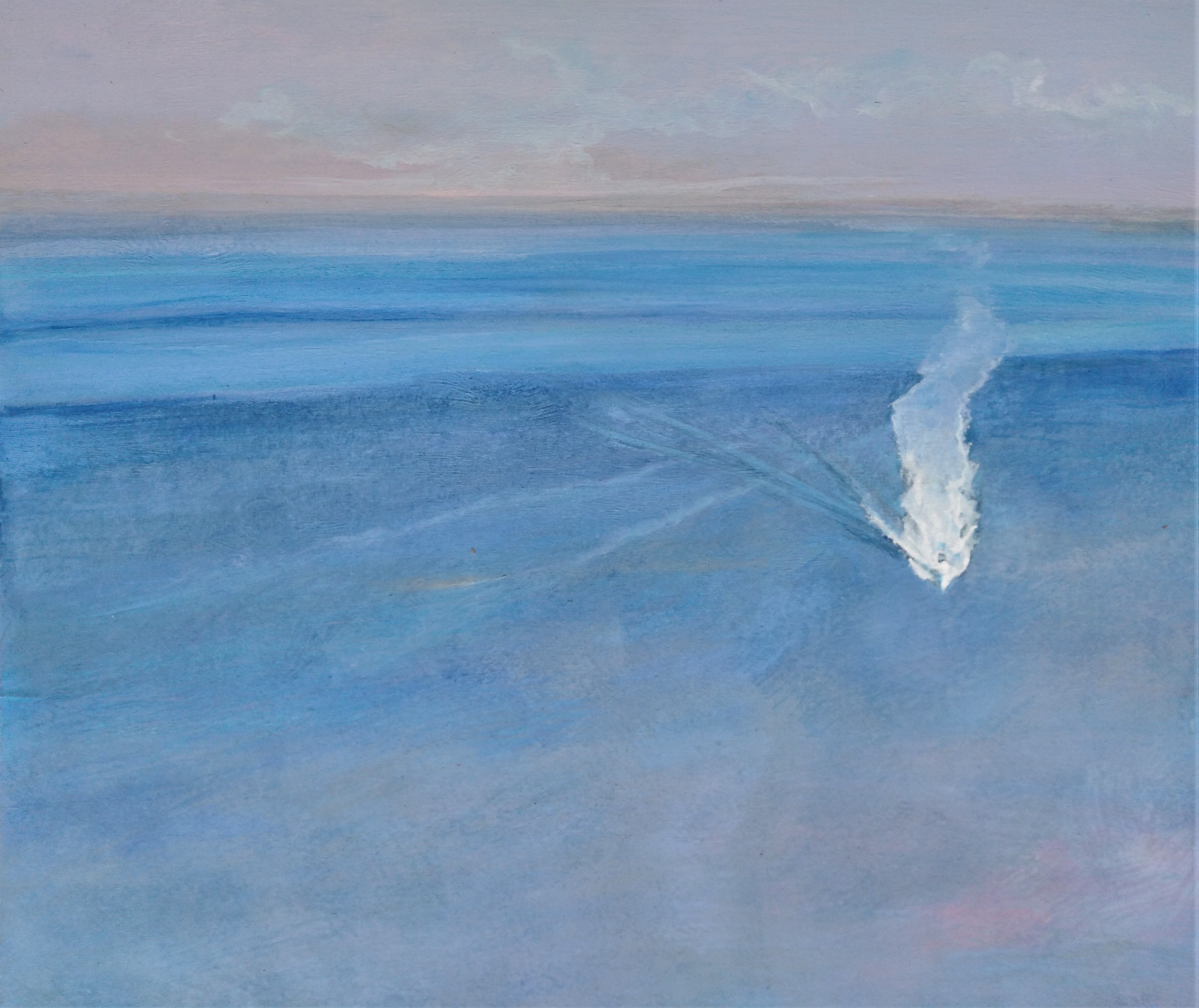 Si è imbarcato sul primo traghetto, quello che lascia Napoli ancora avvolta nella nebbia e nel sonno. E’ rimasto in piede sul ponte superiore ad osservare come l’imbarcazione scivolava su quel mare d’olio. Rimane incantato dalla scia che la nave si lasciava dietro.