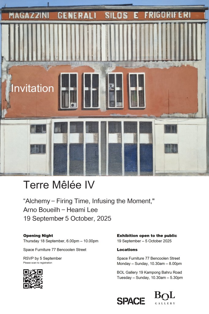 Terre Melée IV – à Singapour – Heami Lee / Arno Boueilh du 19 septembre au 5 Octobre 2025 Date: 7 décembre 2025Auteur: arnoboueilh Catégorie: Expositions, Uncategorized Navigation des articles ← « Regards Croisés sur Naples » – Arno Boueilh / Ferrante Ferranti – Galerie Chrystel Anthéo – du 13 septembre au 26 octobre 2025 « Alchemy – Firing Time, Infusing the Moment » 19 Septembre – 15 October SPACE Furniture / BOL Gallery – Singapore Partager : Cliquer pour partager sur X(ouvre dans une nouvelle fenêtre) X Cliquez pour partager sur Facebook(ouvre dans une nouvelle fenêtre) Facebook J’aime chargement… Similaire